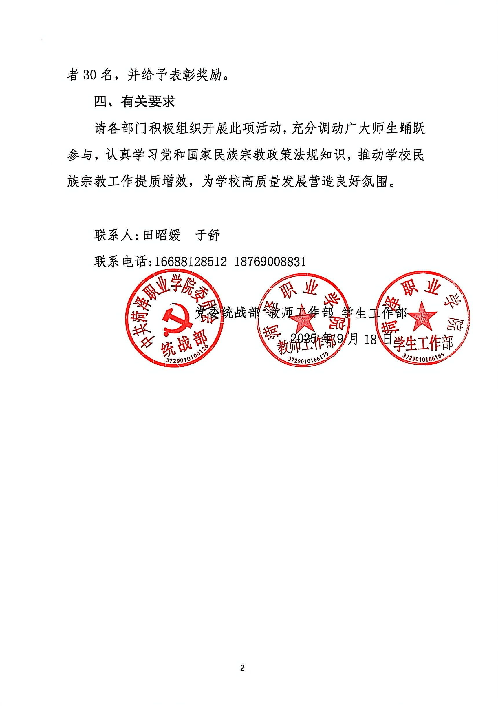 为加深对国家民族宗教理论政策的了解,提升抵御宗教渗透能力,筑牢中华民族共同体意识,威尼斯官网党委统战部、教师工作部、学生工作部联合开展此次网络知识竞赛活动,诚邀全体教职工与学生参加!