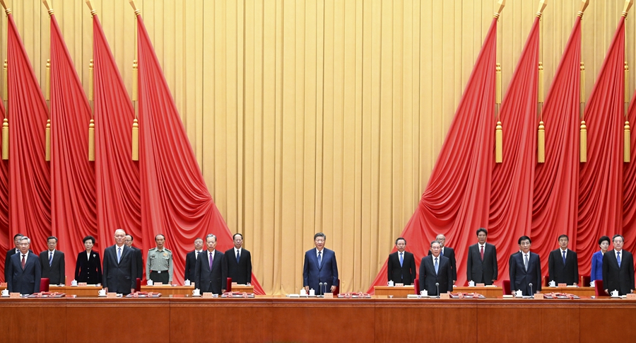 9月27日,全国民族团结进步表彰大会在北京举行。习近平、李强、赵乐际、王沪宁、蔡奇、丁薛祥、李希等出席大会。新华社记者 谢环驰 摄
