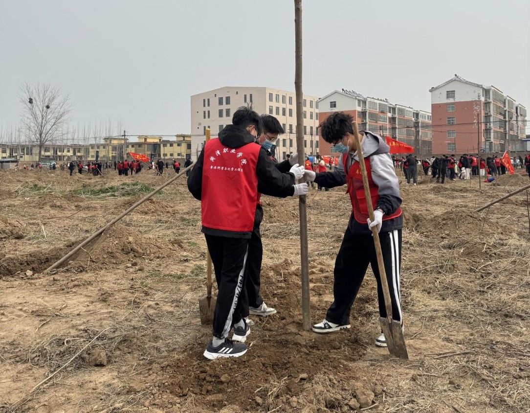 活动现场,朱春芝书记与各位老师、青年志愿者同学分工协作,扶正树苗、挥锹铲土、提水浇灌,一棵接着一棵,各个环节衔接有序,现场一派热火朝天的景象,经过大家的共同努力,一排排树苗挺拔树立,一株株树苗在小留镇的土地上“安家落户”,为这片土地增添了一片新绿。活动不仅美化了环境,更在志愿者们心中种下绿色希望,同时也充分展现了学生志愿者们不怕苦、不怕累的雷锋精神。