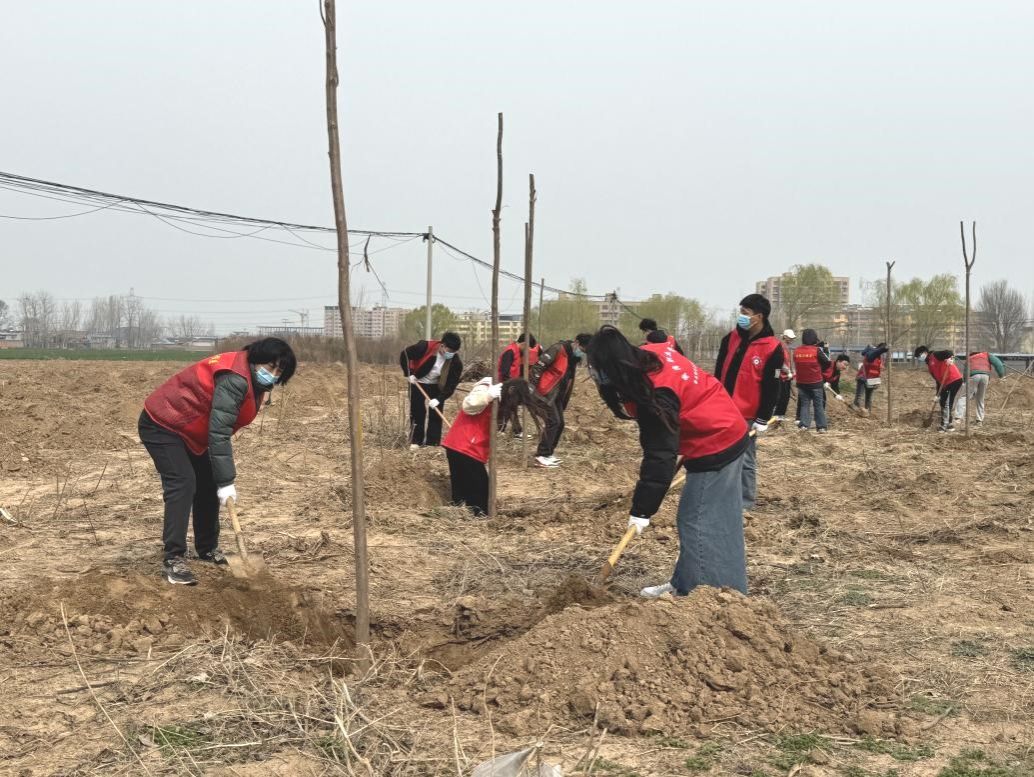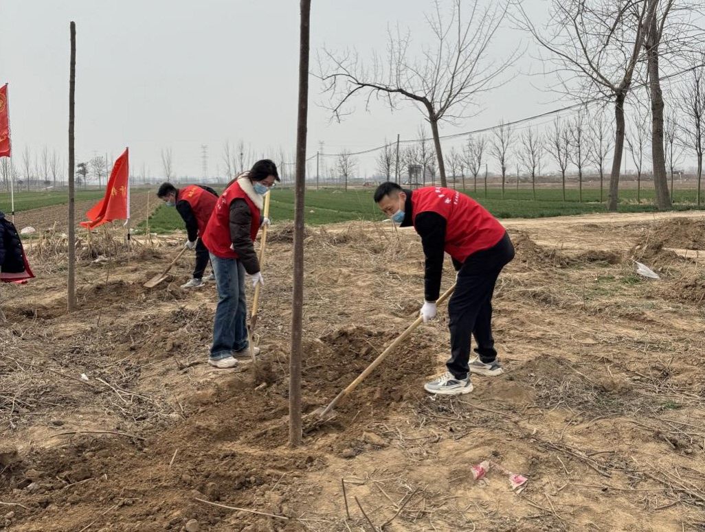 又是一年春光好,又到一年植绿时,为积极相应国家号召,推动生态文明建设,坚持“党建带团建”,充分发挥团组织的桥梁纽带作用,值此雷锋月之际,建筑与化工学院学生党支部于3月15日带领建筑工程系和食品科学与化学工程系青年志愿者来到菏泽市牡丹区小留镇参与开展“建设生态菏泽,推动绿色发展”公益植树活动。