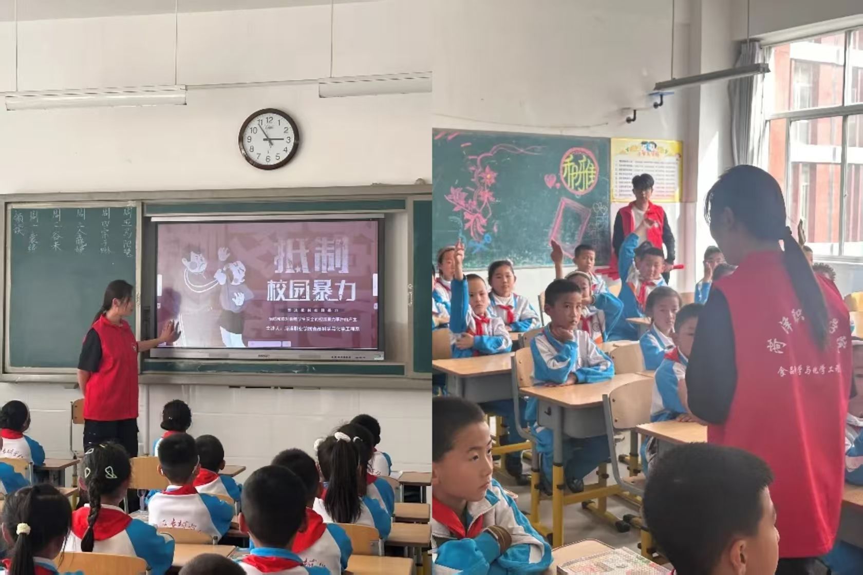 其次,结合小学生的年龄特点和认知水平,志愿者又与小朋友们分享了校园欺凌的有关知识,他们与小朋友们进行交流互动,让小朋友了解什么是校园欺凌,以及校园欺凌对受害者和施暴者的危害。强调团结与互助的重要性,教授孩子们如何识别和防范校园暴力,鼓励孩子们在遇到欺凌时勇敢站出来,寻求帮助,同时也要学会关心、支持身边的同学。